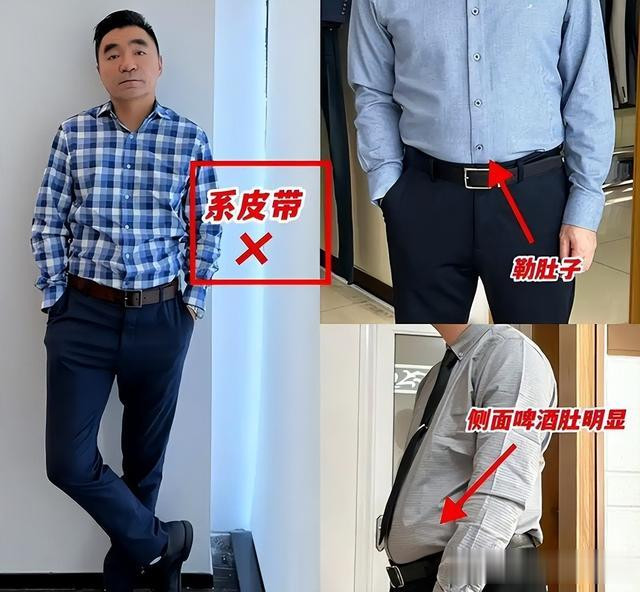为什么不建议大家扎裤腰呢?因为很多中年男性的赘肉都堆积在肚子和腰胯的位置上,本身紧巴巴的上衣穿起来就已经暴露了这些问题,如果还将衣服的下摆塞进裤腰里,很容易有一种撑开的感觉,显得人更加肥胖臃肿。